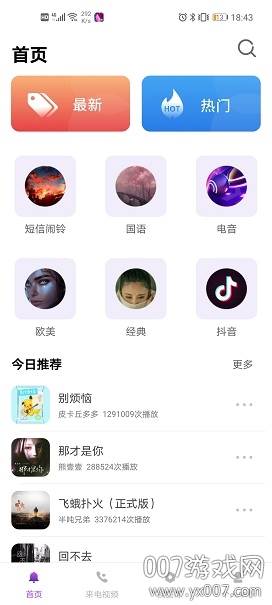 在“热门”或“最新榜单”中,您可以轻松找到并下载全网热播铃声及创意小视频。