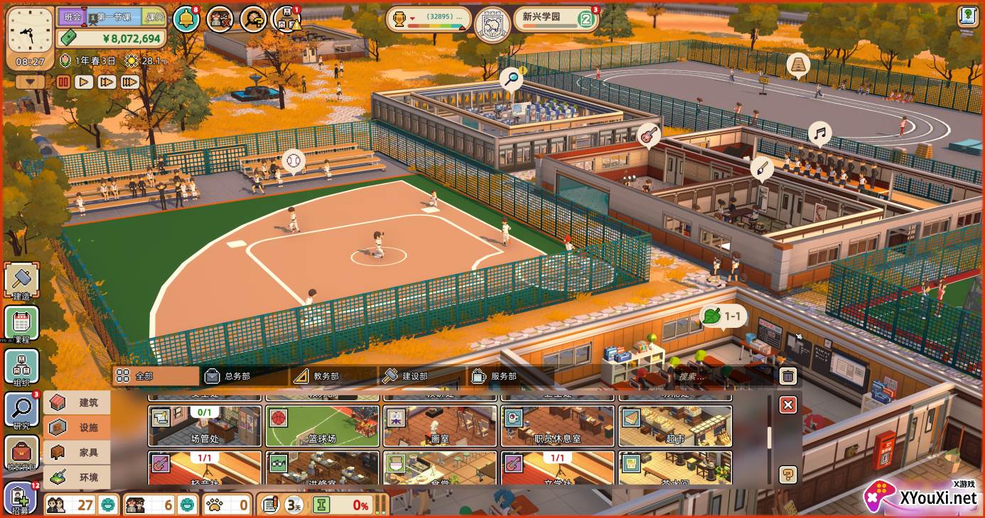 游戏为您的创意提供了广阔的画布:超过50种精心设计的设施,搭配600余件风格各异的家具,任您挥洒想象,塑造独一无二的学园风貌。无论是向外拓展占地面积,还是向上构建摩天楼宇,您都能满足任何宏大或“奇特”的发展构想。这种极致的自由度,确保您建造的,将是一所真正属于您的、充满欢乐的学府!
