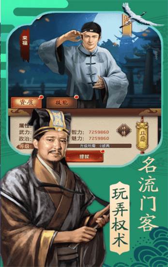 游戏中,您需巧妙铲除异己,提升门客等级,他们将成为您出谋划策的得力助手。