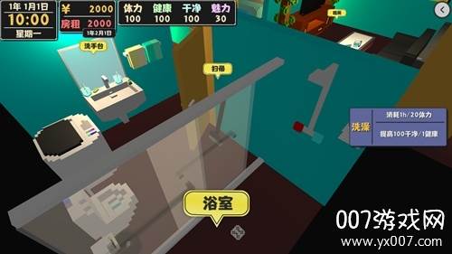 公寓内的生活设施与前作大体相似,包括配备洗手台、浴室和扫帚的卫生间。对于熟悉前作的玩家而言,这些设施能提升角色的“干净”度,但也会相应消耗体力和健康值。这其中的平衡,便是游戏策略性的体现。