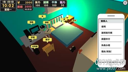 在游戏初始阶段,我选择了2000元的起始资金,这对于新手模式而言无疑是更稳妥的选择。花上一天时间熟悉游戏的基本机制后,我不得不说:阿伟真是个无可挑剔的好伙伴!前期,我强烈建议通过跑步来提升体力值,目标是将其提升至150点,因为后续的游戏开发过程会极大地消耗体力。在此期间,我利用零碎时间去超市打工,凌晨时分则主动帮助阿伟进行大扫除。到了中午,如果好感度足够,还可以蹭阿伟的一顿饭。在阿伟直播前,与其聊聊天(他通常在晚上六点直播),这样下来,一个月大概能赚取三四千元。不过,我个人玩得比较谨慎。在属性培养方面,最初的几个月,我基本是睡到凌晨,完成大扫除后,若体力尚存,便会阅读书籍。两个月后,当积蓄稳定在一万多元时,我购入了一辆自行车,以便更便捷地前往图书馆查阅资料,并在医院购买药品。当存款降至八千元左右时,我便开始调整工作频率,每周打工四次。回想起健身房,我竟然只去过四次,这真是贫穷的无奈。其实,前期也可以考虑购买开发素材,只是我当时并未留意到这一点,否则也不必天天往图书馆跑了。中期购买素材简直是“奢侈品”,但后期有了工作室的员工协助,素材的消耗反而显得不那么关键了。中期阶段,我专注于游戏开发,积攒的药品在此刻派上了用场,几乎每天都要服用十几片,我都担心他会噎着。完成开发后,便可以去公园喝饮料、散步,以增加灵感。如此循环往复——但无论如何,蹭阿伟的饭是雷打不动的!游戏开发完成后,便可以找阿伟进行推广。我记得我的第一款游戏叫做“你无情”,是在三个属性都达到五百左右才开始制作的(后来被我无情地卖掉了),售价大约二三十元。当时真是感动得差点原地蹦迪。就这样,一个月内我开发了三款游戏,勉强够支付药品费用。七月份,我的资产突破了二十万元,我一度犹豫是否要搬家。然而,看到阿伟辛勤地做饭,孜孜不倦地为我推广游戏,我最终决定在十二月份搬家。但不到三个月,游戏的新鲜感便逐渐消退,我无法追求心仪的女孩,也不能撸猫,只能依靠阿伟的饭食维生,这让我无比失落。于是,我在十月三号搬离了那个熟悉的环境。初到新地方,我感到有些迷茫,甚至怀疑“我是谁?这里是哪里?”。但渐渐地,我似乎也习惯了。然而,每天中午兴高采烈地回家,却发现厨房空空如也,只能独自悲伤地准备餐食。接下来的两个月,游戏便进入了后期阶段。我将重心放在了购买素材、撸猫、美容、去酒吧搭讪优子,以及游戏开发之间来回穿梭。当优子和猫咪的好感度都达到100时,我先将优子带回了家。然而,猫咪却无法一同前往!猫咪在我心中,早已超越了女友的地位,简直就是我的“老婆”!“有女友又如何,跟我有老婆有什么关系?”(咳咳)后来,我到处寻找攻略,终于在“快爆”上找到了更新内容,同时游戏也推出了工作室和游戏厅。工作室功能非常强大,招募三位高级设计师(最好能加分超过两万),为游戏命名后便可自动进行开发。完成后,每款游戏能带来约100万元的收益,每款约80元,真是令人欣喜。不过,资产不足五十万的玩家,我建议还是先谨慎考虑。至于游戏厅,我只能说,玩到手都快残疾了,因此我放弃了。游戏厅主要是通过积分兑换S级插件,有兴趣的玩家可以尝试一下(每点击一次屏幕,就相当于花掉两包辣条的钱)。时至今日,我已经无聊到每天给员工发奖金了。后期游戏的可玩性确实不高,大概就是和美琪、海华聊天,然后跑步之类的,简直如同养老一般。接下来,我准备挑战一下《属性与生活1》,即使死了几十次,我也一定会坚持下去!