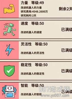 从第二天开始,您的唯一目标便是“攒钱雇人”。初期无需急于科技研发,只需确保生产与销售人员的比例维持在2:1即可。待8名员工全部就位后,再着手科技研发。若某日临近结束时,恰好攒够1万金币,且有200-300单位的材料储备,便可果断雇佣新员工。负债并非洪水猛兽,随着员工数量的增长,资产增长速度也会随之加快。每日留意视频广告,若无则检查机器人研发进度,保持这种良性循环,很快便能迎来机器人大赛。若资金允许,务必报名参赛;若资金紧张,也要千方百计创造条件,即使负债一万以上也无妨,只要储备300-500单位的土豆,便可安然度过。机器人比赛是首要任务,初届比赛通常能获得第二或第三名。持续研发,第二届起便能稳居榜首,前三名分别可获得10%、20%、30%的销量加成,有效节省销售人力。