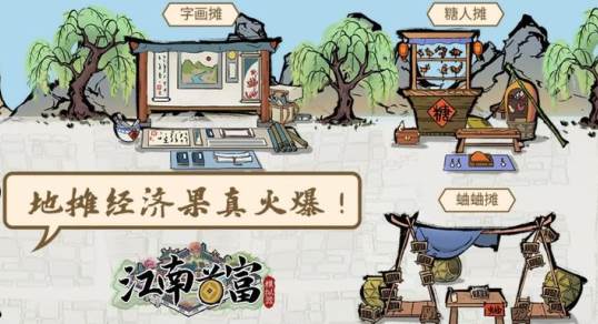 初入江南,您仅有一个简陋的糖人摊。随着财富的日渐积累,蟋蟀摊、豆腐摊、风车摊也将陆续开张,您的商业版图逐渐扩张。