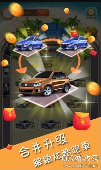 游戏的核心玩法简单到令人发指:挂机升级,合并解锁。看着一辆辆酷炫超跑在你手中诞生,从街头小车蜕变为顶级座驾,这过程不仅满足你的收集欲,更是金币滚滚来的保证。即使你忙于生活,只需让它挂机,车辆也能自动升级,让你在家也能躺着赚!
