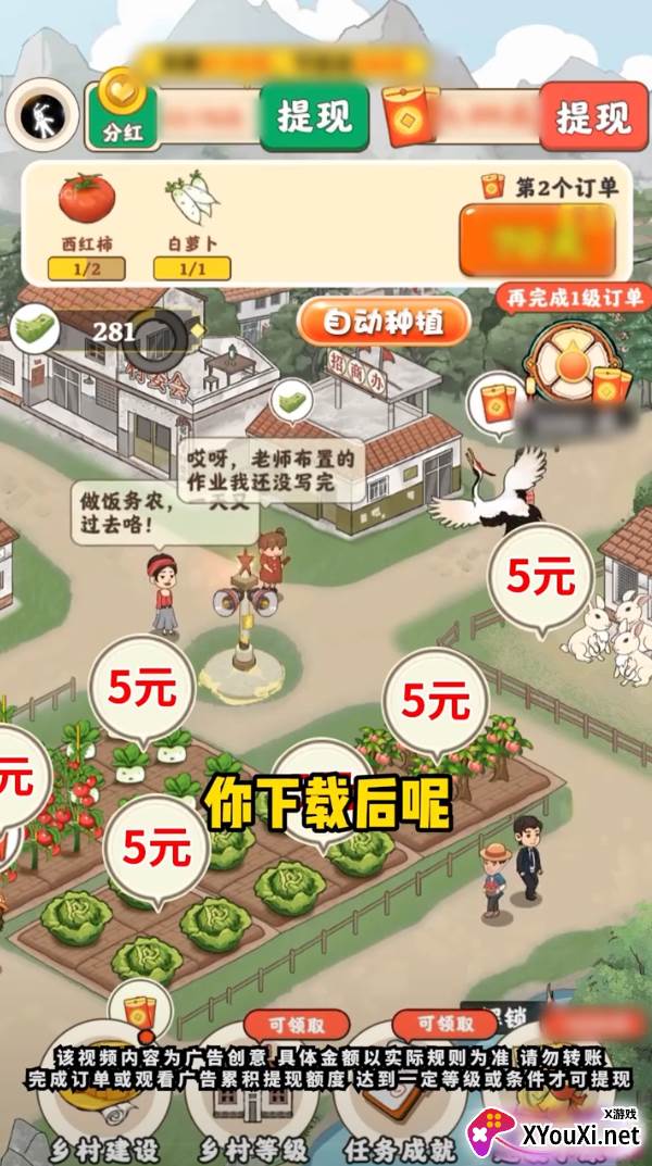 3、从零开始,一块土地,升级即可赢取丰厚红包!