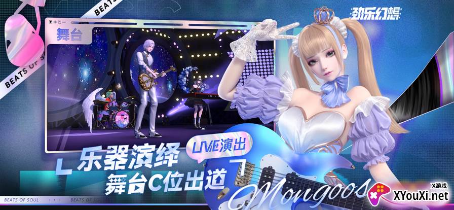 游戏的故事背景设定在一个科技与时尚交织的未来世界。玩家可以自由定制个人形象,搭配充满想象力的乐器与服装配饰。游戏采用Unity引擎精心打造,人物、道具与场景细节丰富且精致。