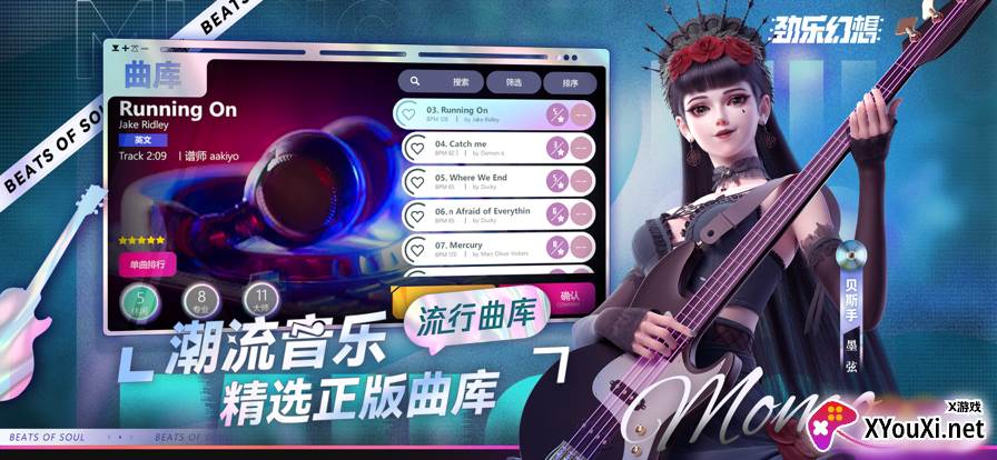 海量曲库,风格多样,流行、嘻哈、电音、国风、摇滚、古典……数十种音乐类型,汇聚成一场音乐盛宴。收录数百首正版潮流曲目,让你在游戏中尽享听觉与操作的双重乐趣。