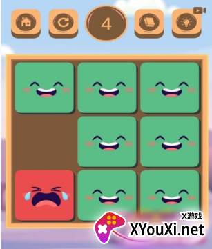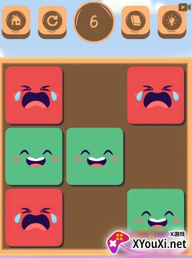 游戏的核心任务:让所有的方块都展露灿烂的笑颜。游戏背景设定充满了童趣:想象一下,一群孩子们聚在一起玩耍,当他们看到身边的伙伴情绪发生变化时(原本哭泣的变得开心,开心的变得沮丧),他们自己的心情也会随之改变。你扮演的角色,就是那位能够让任意一个孩子“跑”到空地上,从而引发连锁情绪反应的引导者。那么,你将如何巧妙地安排孩子们的移动,才能最终让所有人都开怀大笑呢?