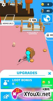 想要加速你的农场建设?召唤一群勤劳的小帮手,它们能在你休息时为你砍伐木材。升级你的锯木厂,招募更多工人。即使是闲置的伐木工,也能过上舒适的生活。