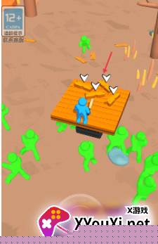 1、初始仅有一块木筏,玩家可利用它攻击僵尸,搜集更多有用的资源,并不断壮大队伍。