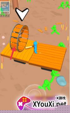 2、集齐四块木板碎片后,即可组装成一个滚筒。玩家需站在滚筒上进行移动。