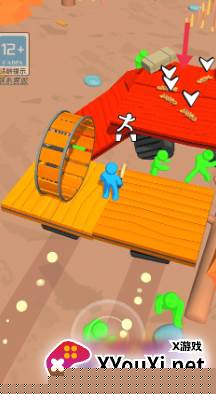4、当小蓝人遇到同色的小蓝人时,便可将其解救,并一同调遣,协助移动滚筒和木板。