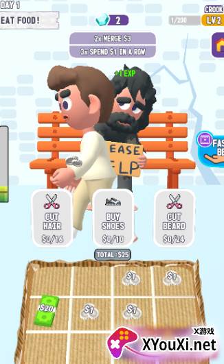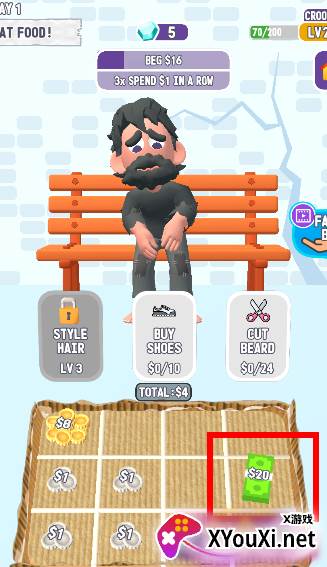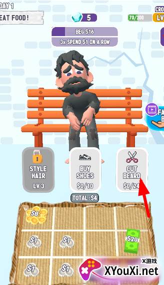 想要在这款游戏中积累财富,首要任务是解锁你的第一个角色——乞丐。通过乞讨和摆摊,你将踏出艰辛的第一步。