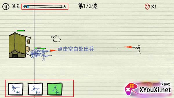 2. 以闯关模式为例,你的任务是派遣己方的士兵,与来势汹汹的敌军展开殊死搏斗。