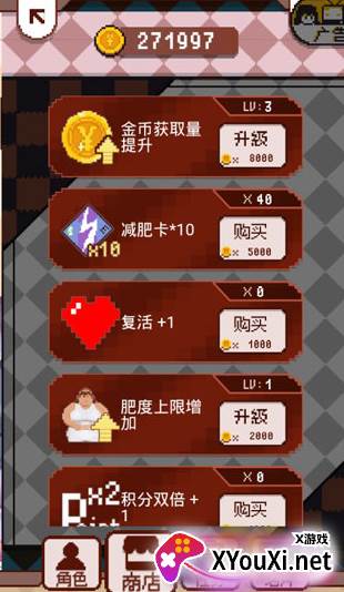 游戏内设商店,琳琅满目的道具助你一臂之力。无论是提升金币获取效率,还是使用神秘的“减肥卡”,亦或是增加宝贵的复活次数,都能让你在减肥跑酷的道路上更加顺畅。