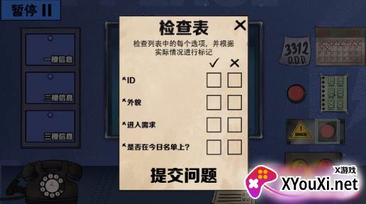 《诡异伪人入侵》是一款引人入胜的解谜游戏,玩家将化身为大楼的严谨审核员,肩负起排查形形色色访客的重任。在这座看似平静的大楼里,潜藏着未知的危险,稍有不慎,将伪人引入,后果不堪设想!唯有凭借敏锐的洞察力和精准的判断力,才能守护大楼的安全。这是一款充满乐趣的游戏,等待着各位玩家前来下载体验!