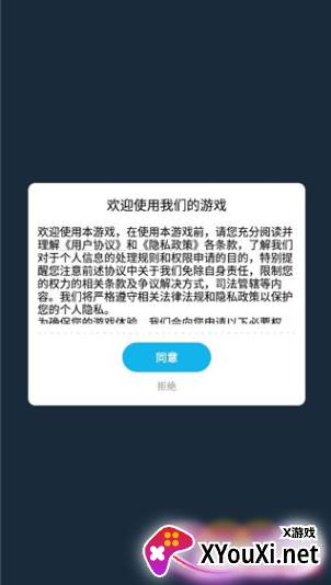 1. 首次安装并启动游戏后,请点击“同意”按钮,如图所示。