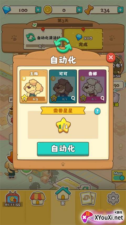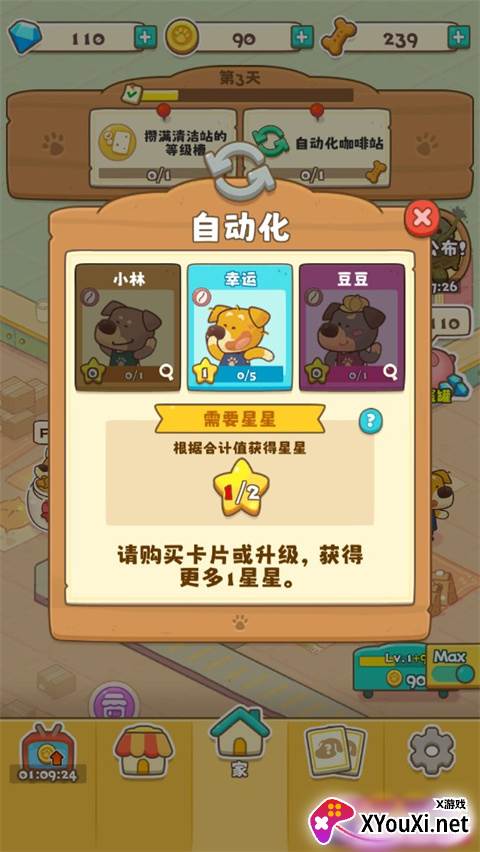 若自动化按钮呈现灰色,不必气馁。这意味着你需要通过升级现有员工,或是招募更多的小狗员工,来累积足够的“星星点数”。一旦点数达标,自动化的大门便将为你敞开。