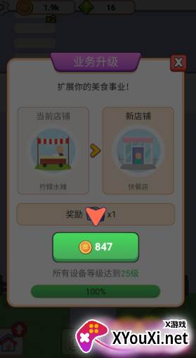 6、当所有项目都达到满级后,再次投入金币,便可将您的商业版图扩张,建造下一个全新的摊位。