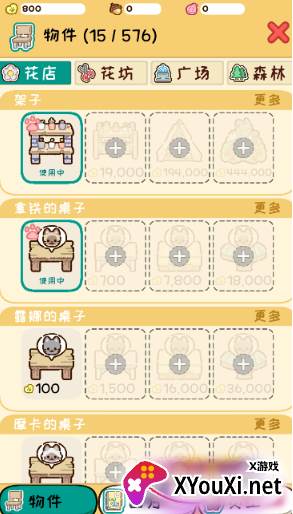 2、在“物件”菜单中,逐步解锁更多款式的桌子,为你的店铺增添风采。