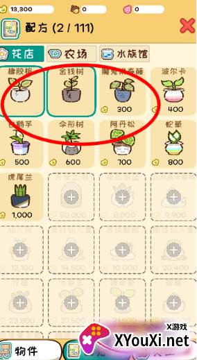 3、接着,在“配方”里挑选心仪的花卉,精心布置到已解锁的桌子上。