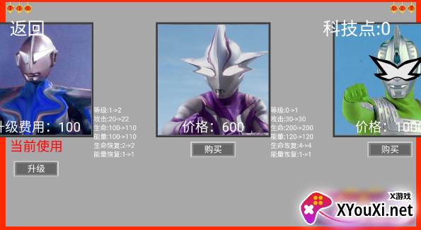 4、挑战成功后,可返回主界面,轻触图标。在这里,你可以运用积攒的科技点,解锁并招募更为强大的奥特曼战士,为你的队伍注入新鲜血液!