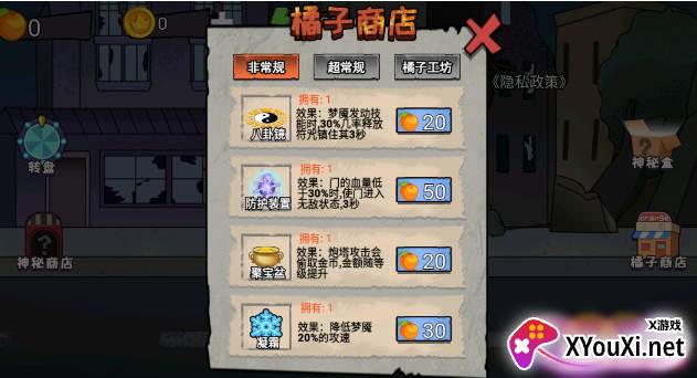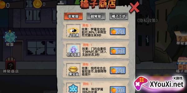 在本站下载《猎鬼躺平派对》正版应用后,轻触“开始游戏”键,右侧的“橘子商店”便能为你提供琳琅满目的道具选择。