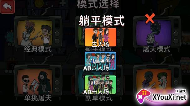 进入模式选择界面,经典、躺平、屠夫、单挑、割草等多元模式任君挑选。
