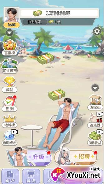 《躺平人生》是一款引人入胜的休闲模拟经营手游。在这里,您将从一无所有的穷小子起步,通过不懈努力赚取巨额财富,最终逆袭成为亿万富翁,创建属于自己的商业帝国,攀登人生巅峰。游戏过程乐趣无穷,但也考验您的商业智慧:明智投资,高效运用公司资金与资源,制定多样化的投资策略,赚取丰厚利润。运用您的商业才华,实现宏伟目标!