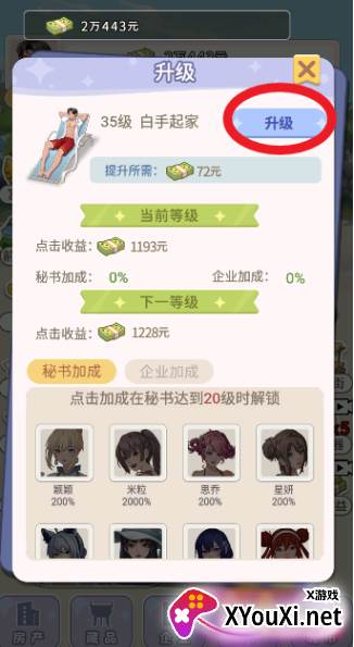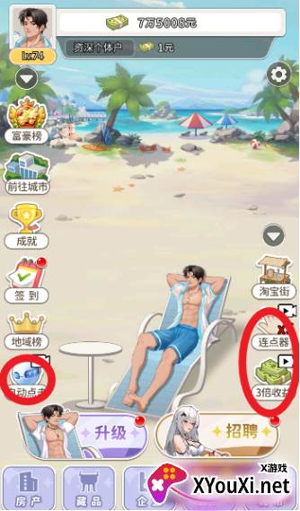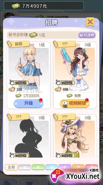 3. 想要更上一层楼?点击“招聘”,解锁专属秘书团队,让她们助您财源广进。