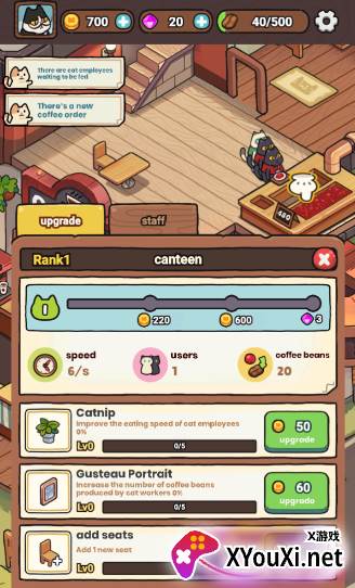 2、每只猫咪都拥有其独特的性格与天赋,你需要巧妙地安排它们的工作,确保咖啡生产线有条不紊地运行。