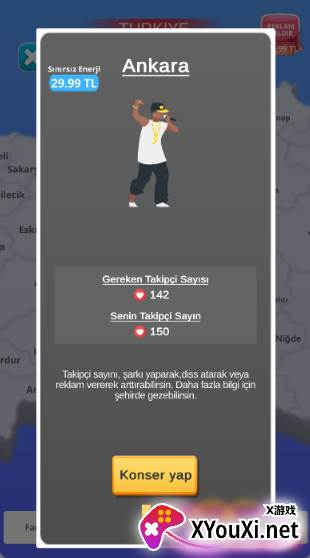 在“成为歌手说唱的人生”这款游戏中,你将亲手塑造你的说唱歌手角色。你可以根据自身风格创作歌曲,发行专辑,甚至与其他艺人展开激烈的“Diss大战”。为了赢得大众青睐,你将穿越安纳托利亚的每一座城市,举办巡回演唱会,力争成为土耳其最顶尖的歌手。在你的城市里,建造艺术中心、咖啡馆、住宅等设施,还能为你带来可观的被动收入。请记住,成为说唱巨星的道路绝非坦途,每一步都需要你做出明智抉择!