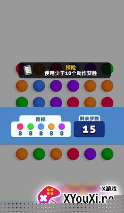 在《开心连球球》的世界里,您的任务是巧妙连接并消除相同颜色的球体!连线越长,消除的快感越强烈,随之而来的分数也越高。游戏上手毫无难度,只需轻触屏幕,拖动指尖,即可将相邻的同色球球串联起来。别忘了,每一次挑战都在限定步数内,您需要完成既定目标哦!