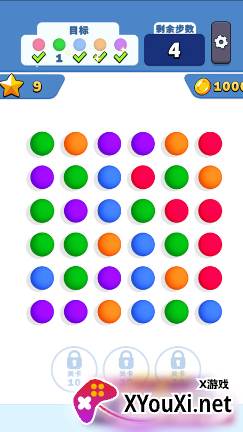 2、通过滑动手指,将关卡内相邻的同色圆球串联成线,即可将其消除。连线越长,消除后获得的积分也越丰厚,高分触手可及!