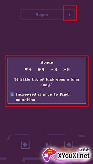 初始角色为“Rogue”。你可以通过点击左右箭头切换角色,但其他职业需要解锁才能使用。