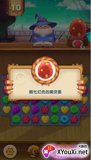 1、踏入游戏关卡,首先映入眼帘的是本关的挑战目标。例如,此关的任务便是孵化那颗红色的精灵蛋。