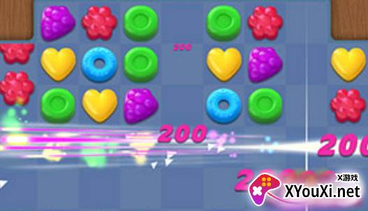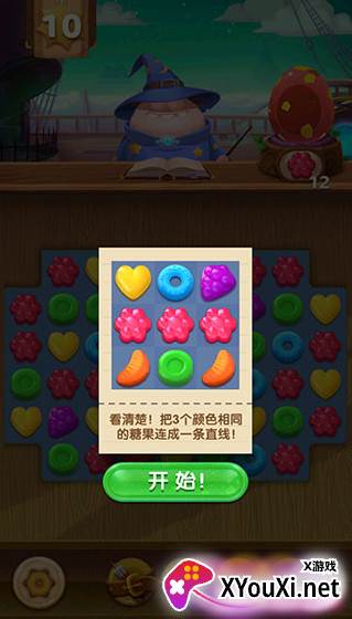 3、看清楚操作:将三颗同色糖果排列成直线,即可触发消除并成功收集它们。