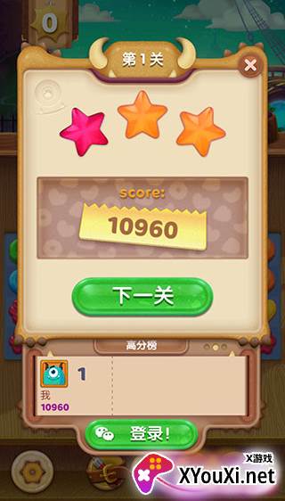 8、关卡结算界面将清晰展示你的得分情况。准备好迎接下一个挑战了吗?点击“下一关”继续前进!