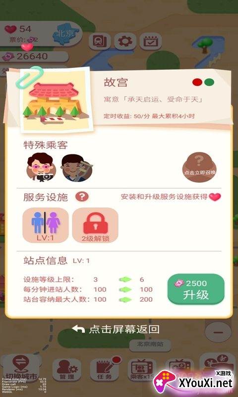 这是一款集休闲与模拟于一体的精致小游戏,让您亲手打造属于自己的高铁站台。将站台选址于繁华都市的核心地带,源源不断的财富将汇聚于此。明智地运用每一笔资金,不断扩张您的运营规模,朝着“高铁大亨”的目标迈进。精细化管理您的每一条高铁线路,让效率与收益并驾齐驱。