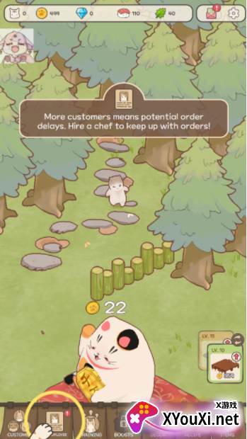 3、你的顾客不仅限于人类,还有各种毛茸茸的可爱猫咪!吸引它们成为你的忠实食客,是你在游戏中的一项重要任务。
