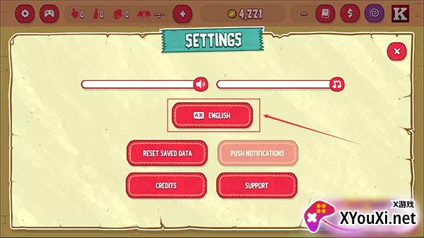 - 在设置菜单中,找到并点击中央的“ENGLISH”选项,这将引导你进入语言选择界面。