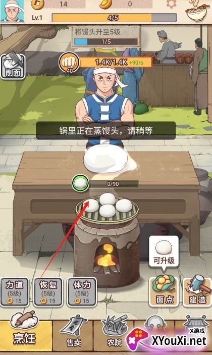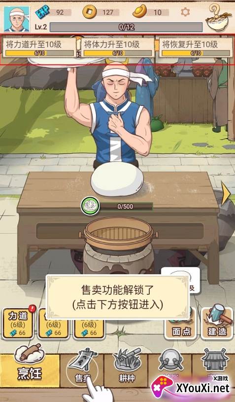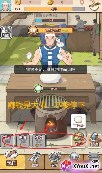 善用辛苦赚来的铜钱,升级你的“力道”和“体力”属性,同时提升面点品质,让你的生意更上一层楼。