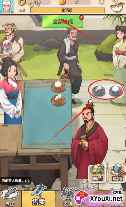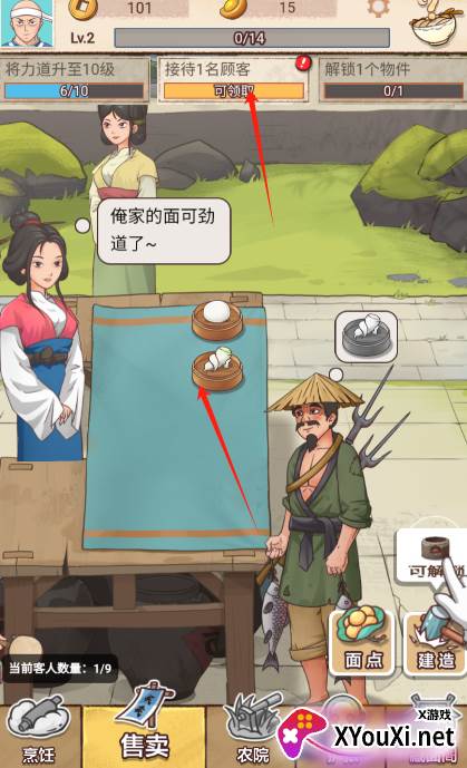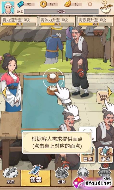 完成各项成就任务,解锁更多新颖面点,然后进入售卖界面,与顾客完成一笔笔愉快的交易。