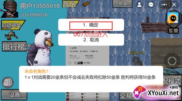 2. 进入游戏前,系统会提示确认,请点击“确定”按钮。
