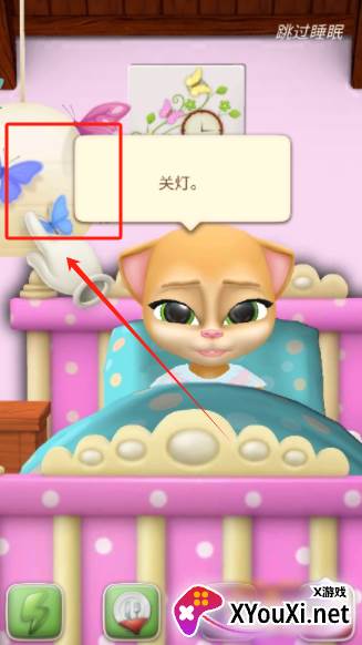 4、夜幕降临,是时候让艾玛好好休息了!点击房间里的灯,轻轻一关,让她进入甜美梦乡。