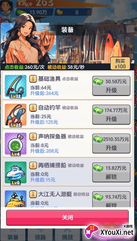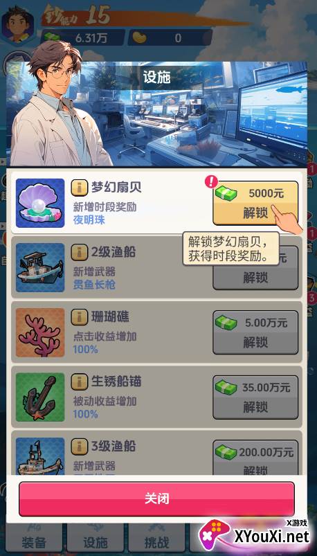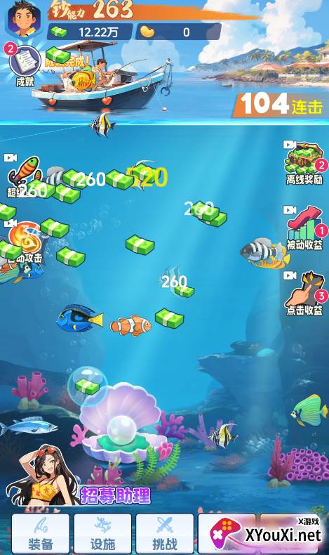 通过钓鱼赚取的钞票,可用于解锁和升级你的专属助理。助理们将为你的收益带来显著加成!