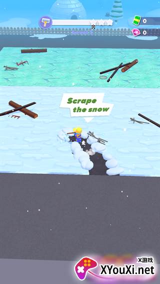 3、清理过程中,地面上的冰块、木板等物品会自动被收集。然而,你的承载容量并非无限,一旦达到上限,就需要及时前往指定地点,将收集到的物品出售变现。