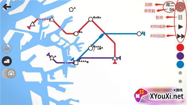 屏幕左上角的时间模块,不仅展示着周期的更迭和客运量的起伏,更赋予你暂停、减速或加速时间流逝的掌控权。