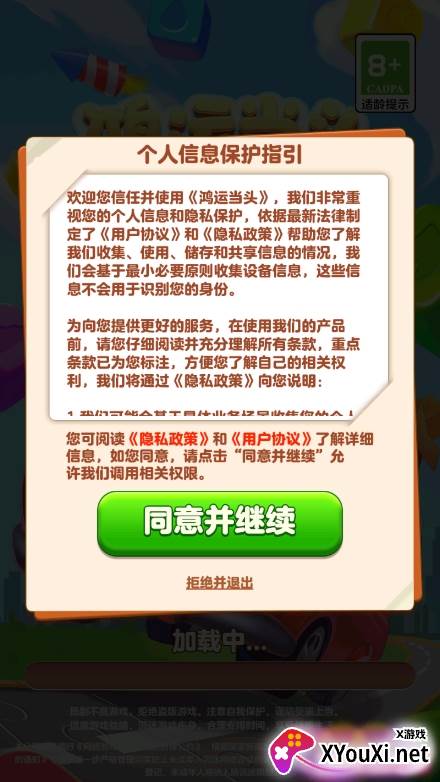 2、首次进入游戏时,请仔细阅读并同意“鸿运当头”的用户协议,确保您的游戏体验顺利开启。