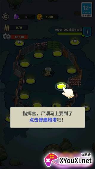 1、初入游戏,遵循指引,迅速搭建你的炮塔阵线;